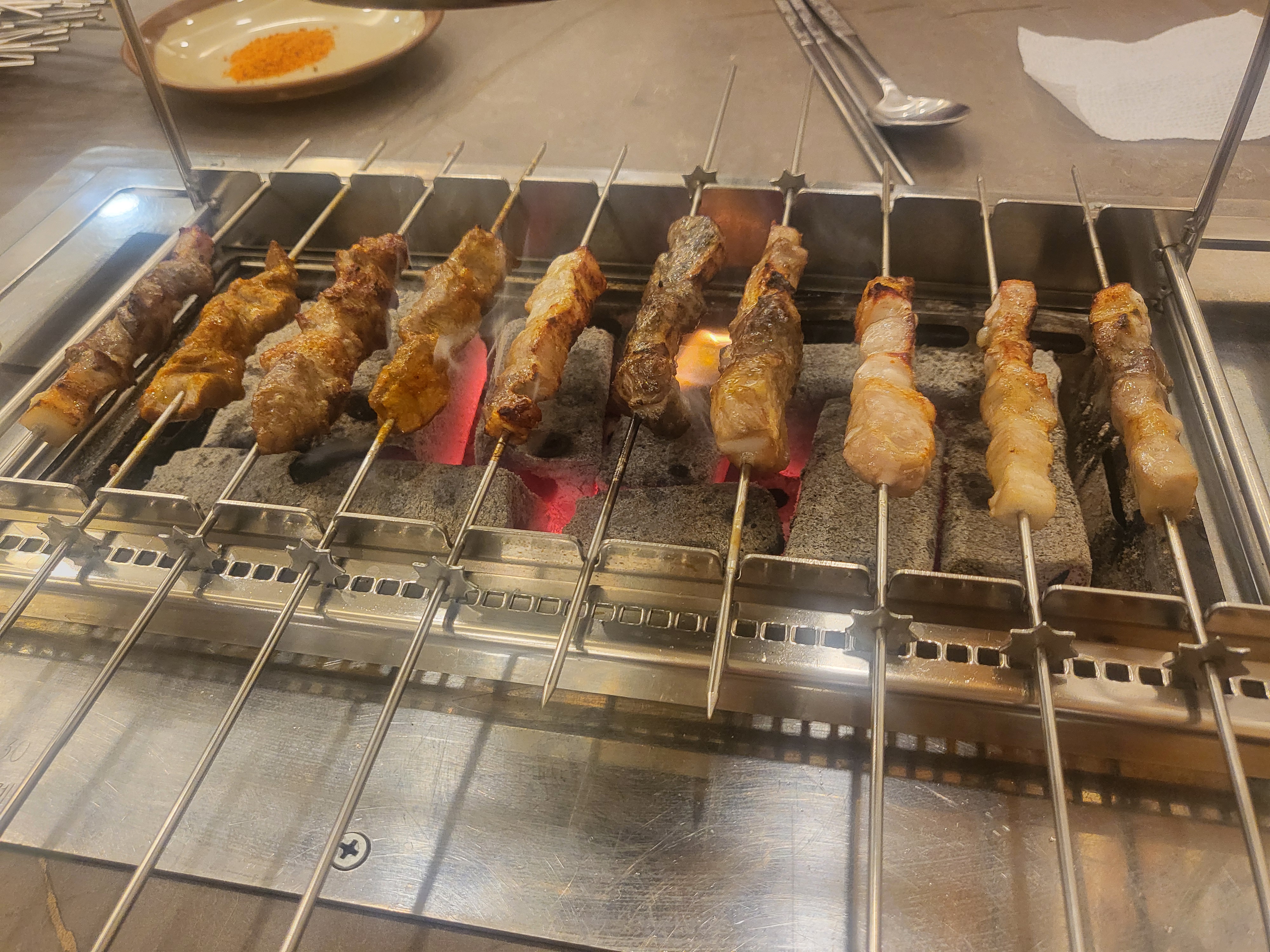 처음 무한리필 주문하면 나오는 모듬 양꼬치 입니다. 이렇게 먹고나면 먹고싶은 꼬치를 따로 주문할 수 있어요. 추가 1회 최대 주문양은 10개입니다.