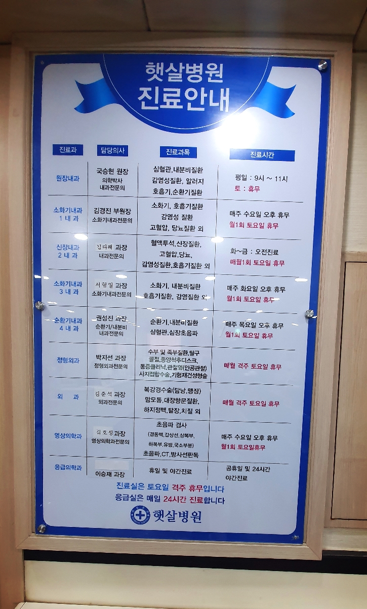 | 햇살병원 진료안내