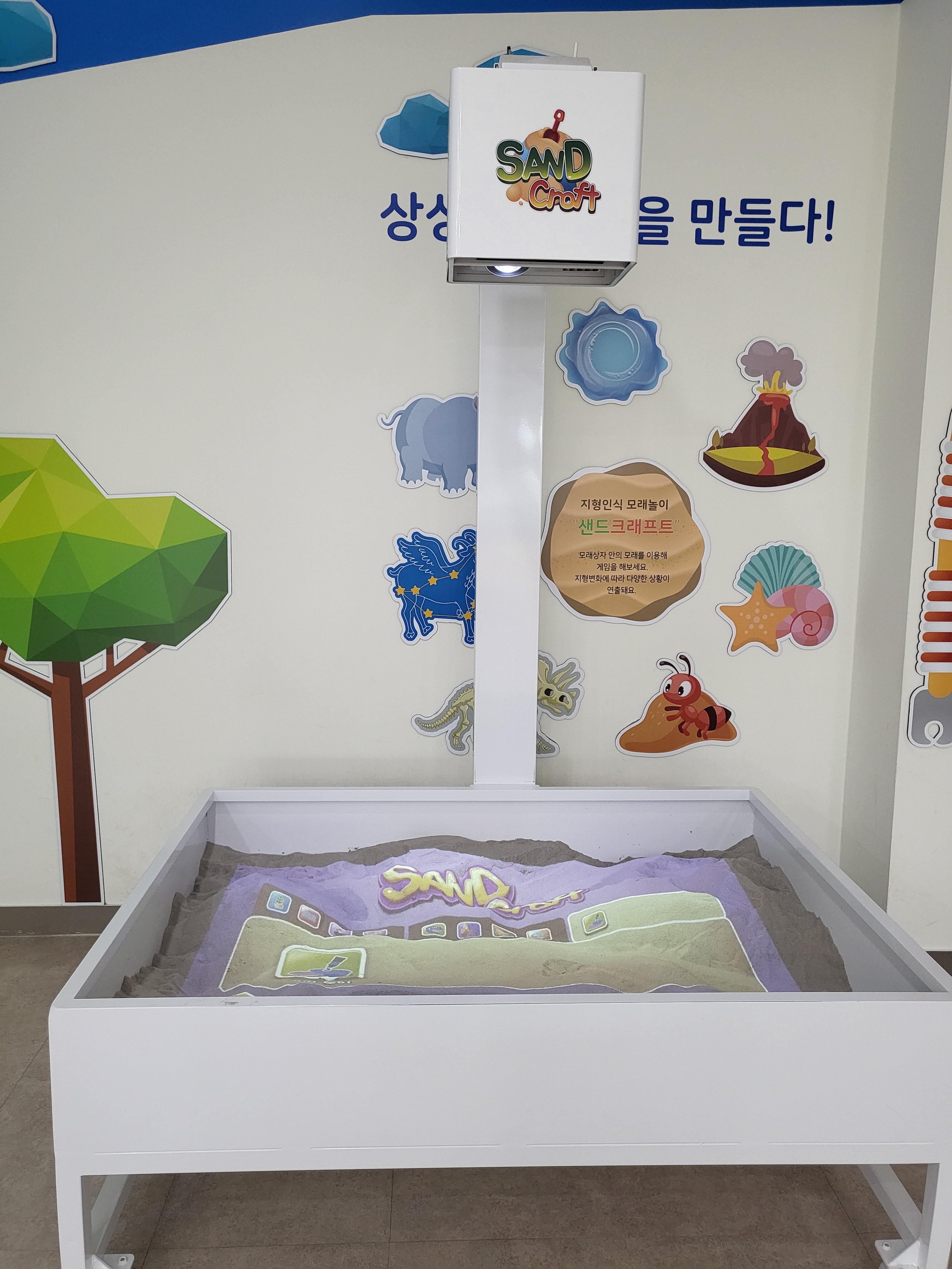 로봇관의 샌드크래프트는 다른곳의 샌드박스와는 조금 다르더라고요. 아이들이 6~7세 정도 되어도 모래는 역시 가장 좋은 장난감이죠. 인기 많았고 가장 오래 놀았습니다. 로봇관의 샌드크래프트는 위에서 영상이 비춰져 모래위를 살짝 터치하면 여러 모드가 나왔습니다. 저는 공룡뼈발굴과 화산체험을 했어요. 재미있게 놀이했어요.