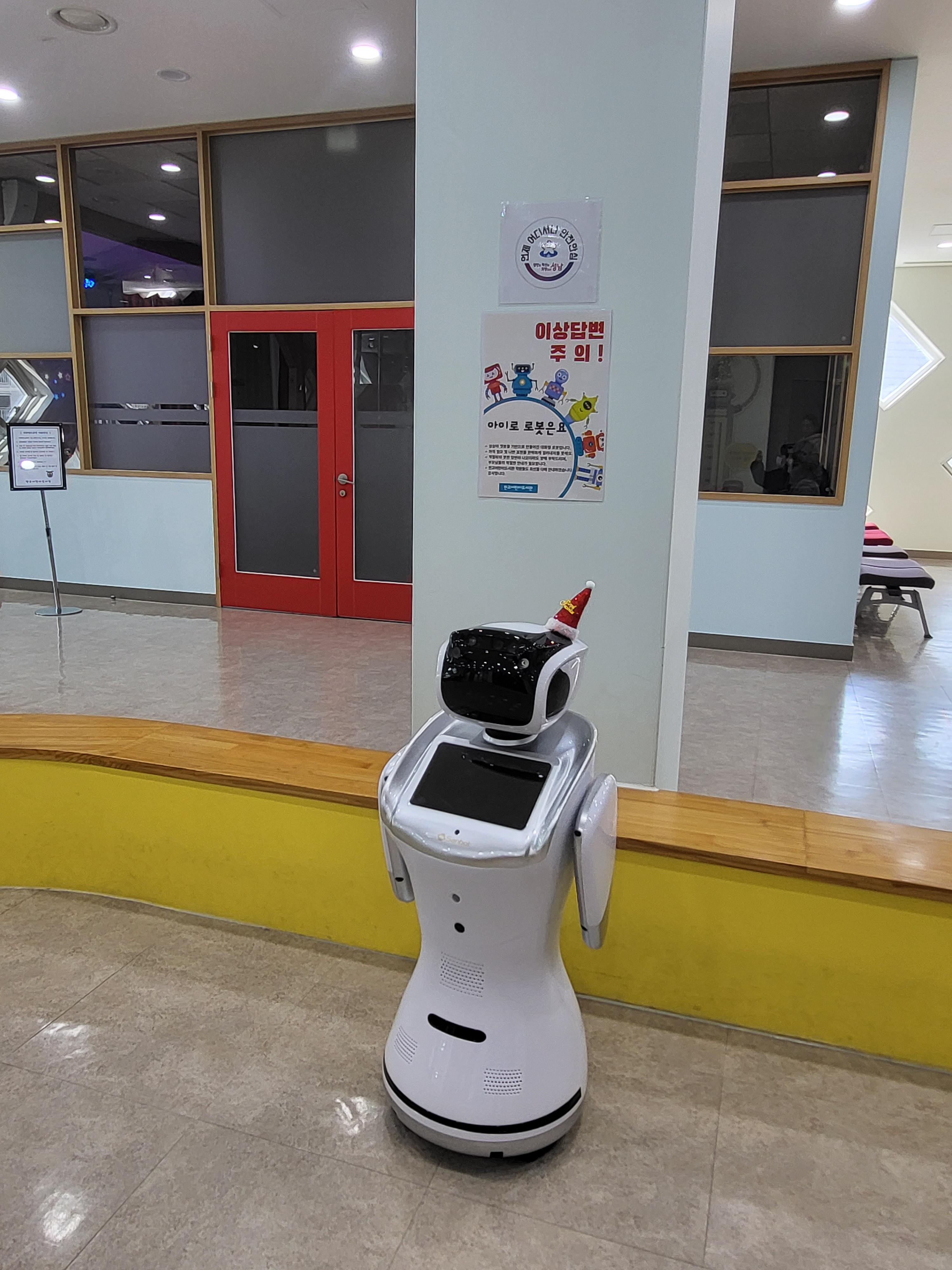 먼저 아이로 로봇은 머리나 손을 살짝 터치하면 반응을 하고 말을 해요. 자세한 대화는 안되지만 이름이나 그곳의 위치 정도는 정확히 말하더라고요. 많은 대화는 아이로 로봇에게 이상답변을 불러일으키니 잠시만 이용했어요.