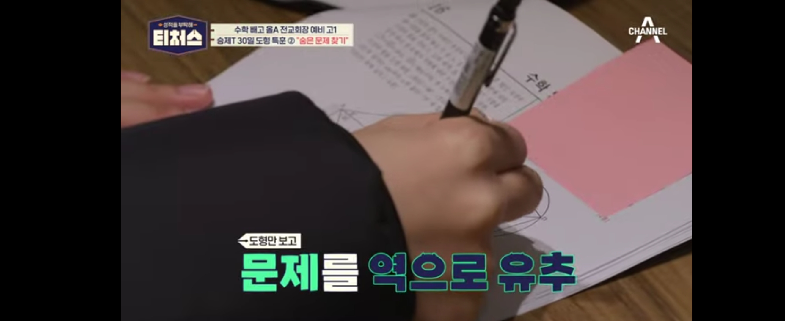 문제는 이미 이해가 완료된 개념공부를 반복해서 할 필요가 없다는 것입니다. 늘 수학개념을 말로 설명할 수 있어야 완전히 이해한 것이라고 수학개념의 이해를 중요하게 말씀하셨던 터라 저또한 유의깊게 보았던 장면입니다. 이미 개념이해가 완료되었다면 그것을 붙들고 있을 것이 아니라 심화문제에서 수학구멍을 찾아야 한다는 말씀이십니다. 수학개념에 대한 응용풀이없이 개념공부만 했기 때문에 오히려 수학점수가 안나왔을 수 있다는 말씀!