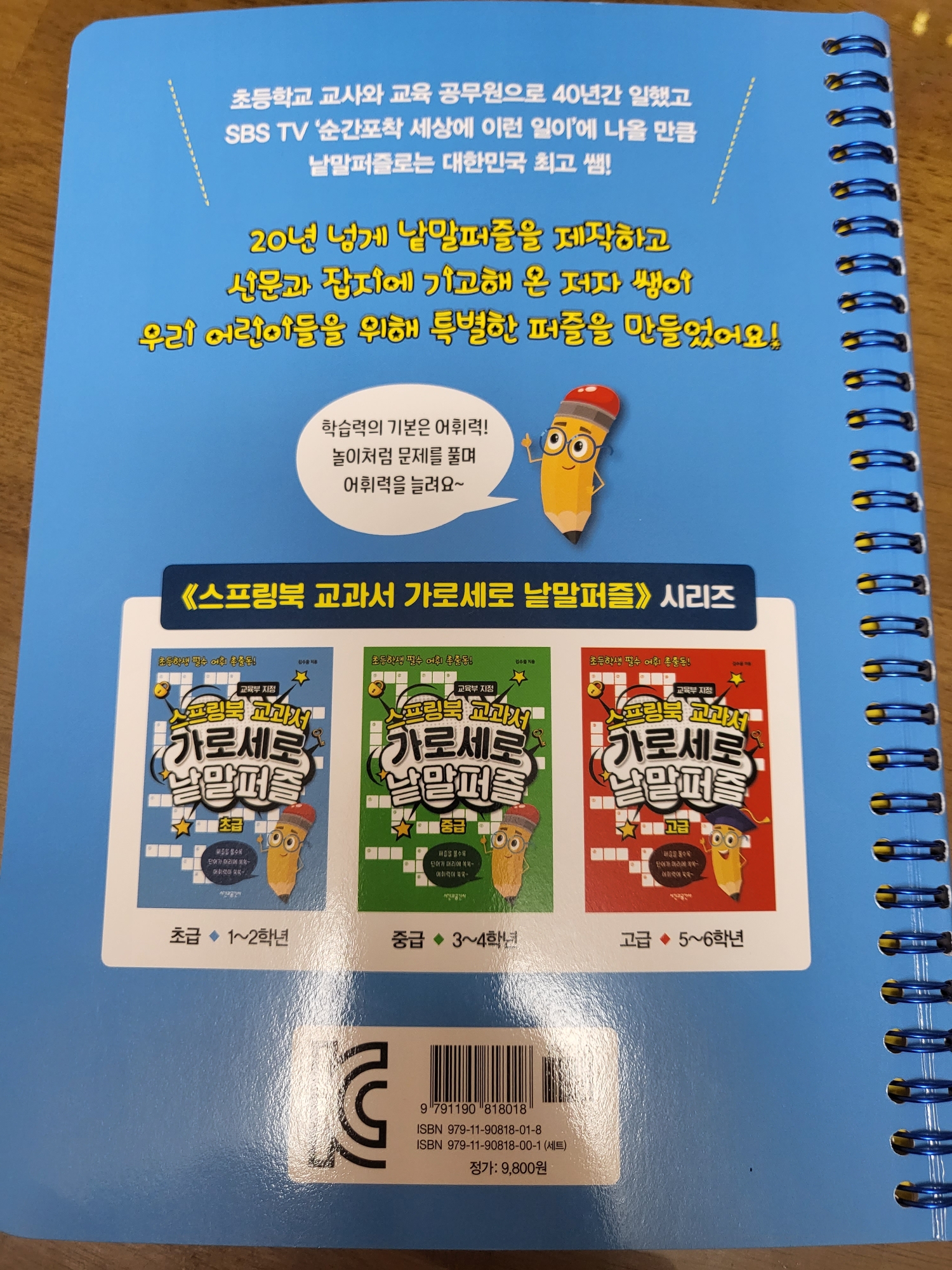 책을 편찬한 김수웅 선생님이 꽤 유명하신 분인가봐요. 20년넘게 낱말퍼즐을 제작하고 신문과 잡지에 기고해 오셨다고 합니다. 이 일로 SBS < 순간포착 세상에 이런일이>에 출연 하셨고요. 현재도 낱말퍼즐 제작과 기고에 온 힘을 기울이고 계신다고 합니다.